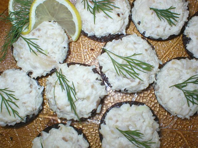 Pumpernickeltaler mit Räucherforellenaufstrich