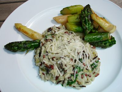 Roh gebratener Spargel mit Bärlauchrisotto